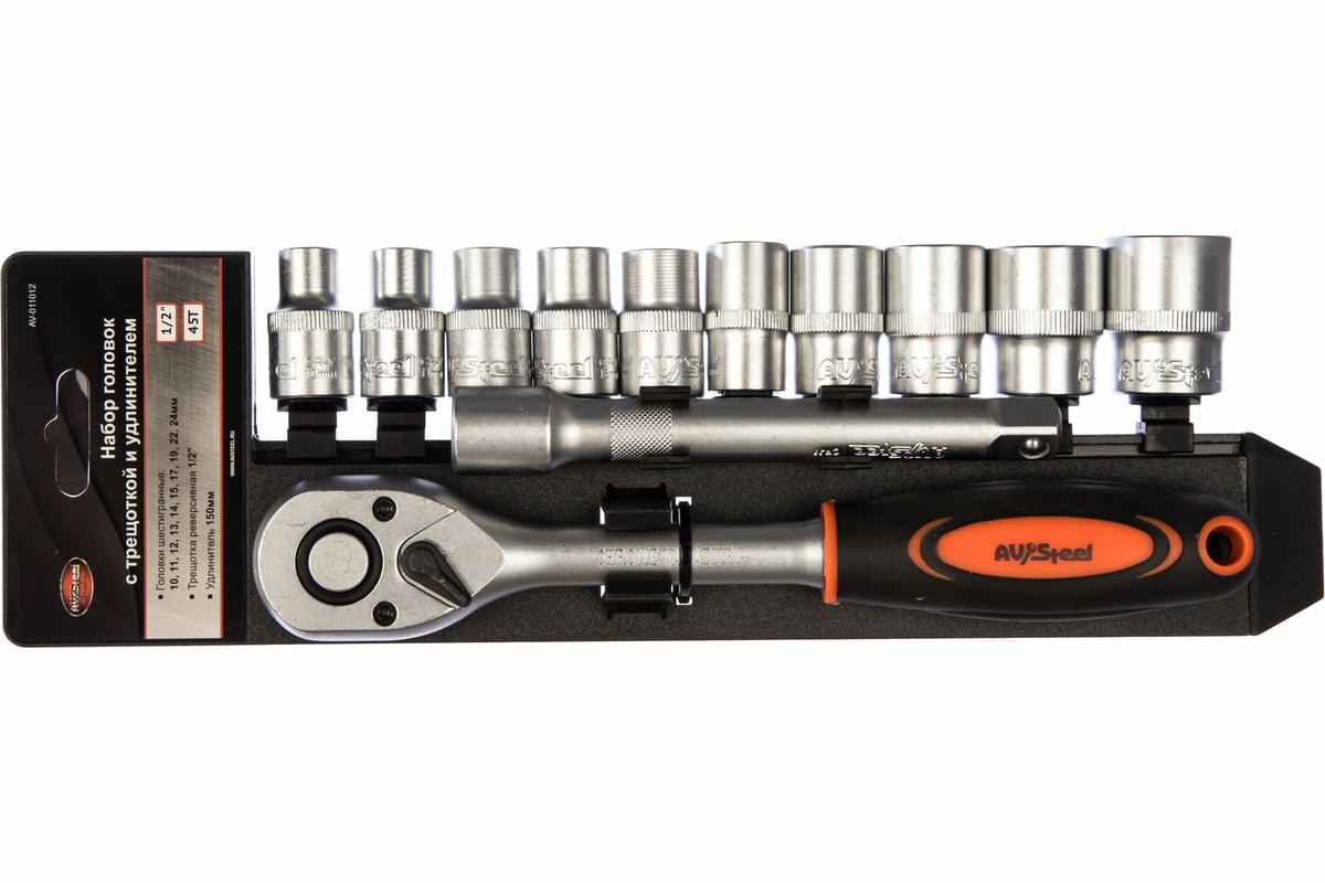 AV Steel Набор инструмента 12 пр. трещетка 1/2+ удлиннитель+10 торцевых головок AV-011012