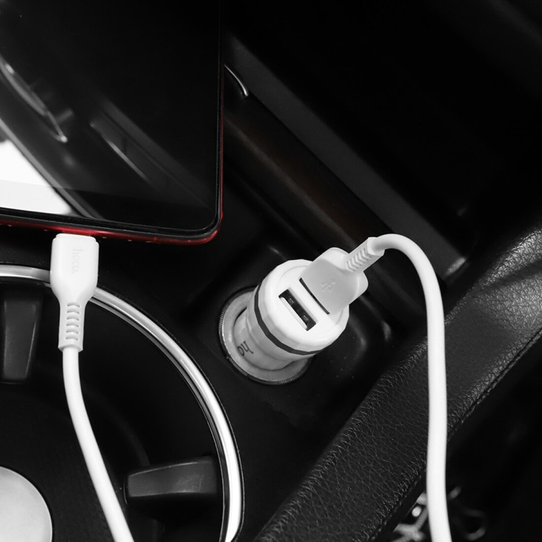 Отзывы на Автомобильное зарядное устройство, 2 USB 2.4A (Z27), usb cable Type-C, HOCO, белый