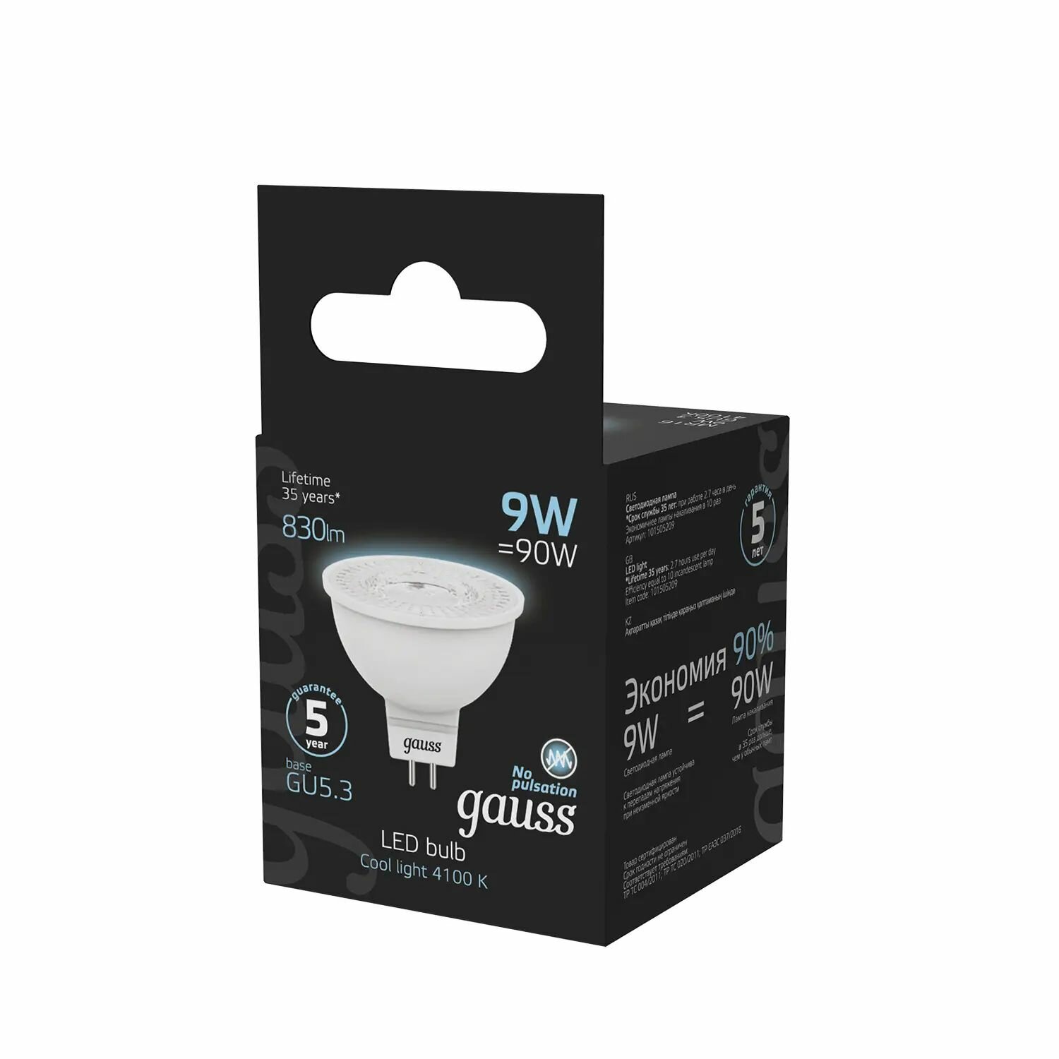 (1 шт)Лампа Gauss MR16 9W 830lm 4100K GU5.3 LED информация: