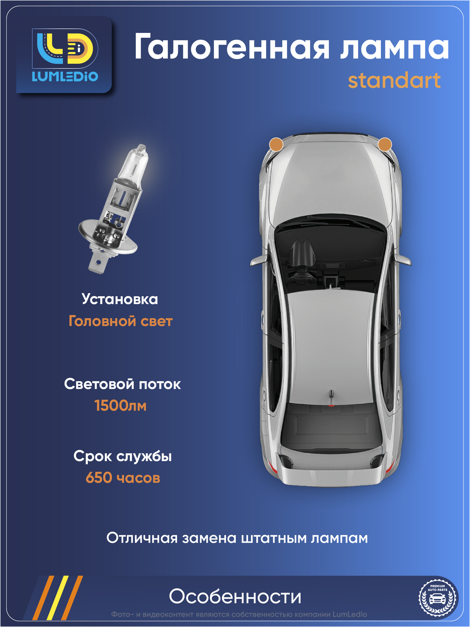 Лампа Галогенная LumLedio H1 12V Standard (1шт) информация: