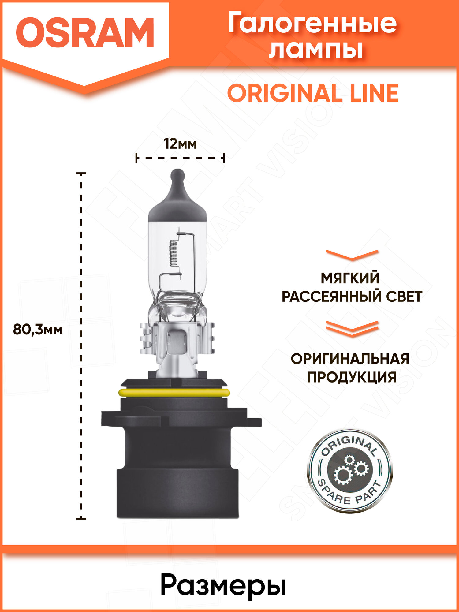 Лампа автомобильная галогенная OSRAM ORIGINAL LINE 9006XS HB4A (P20d) 12V 51W P20d 1 шт. информация: