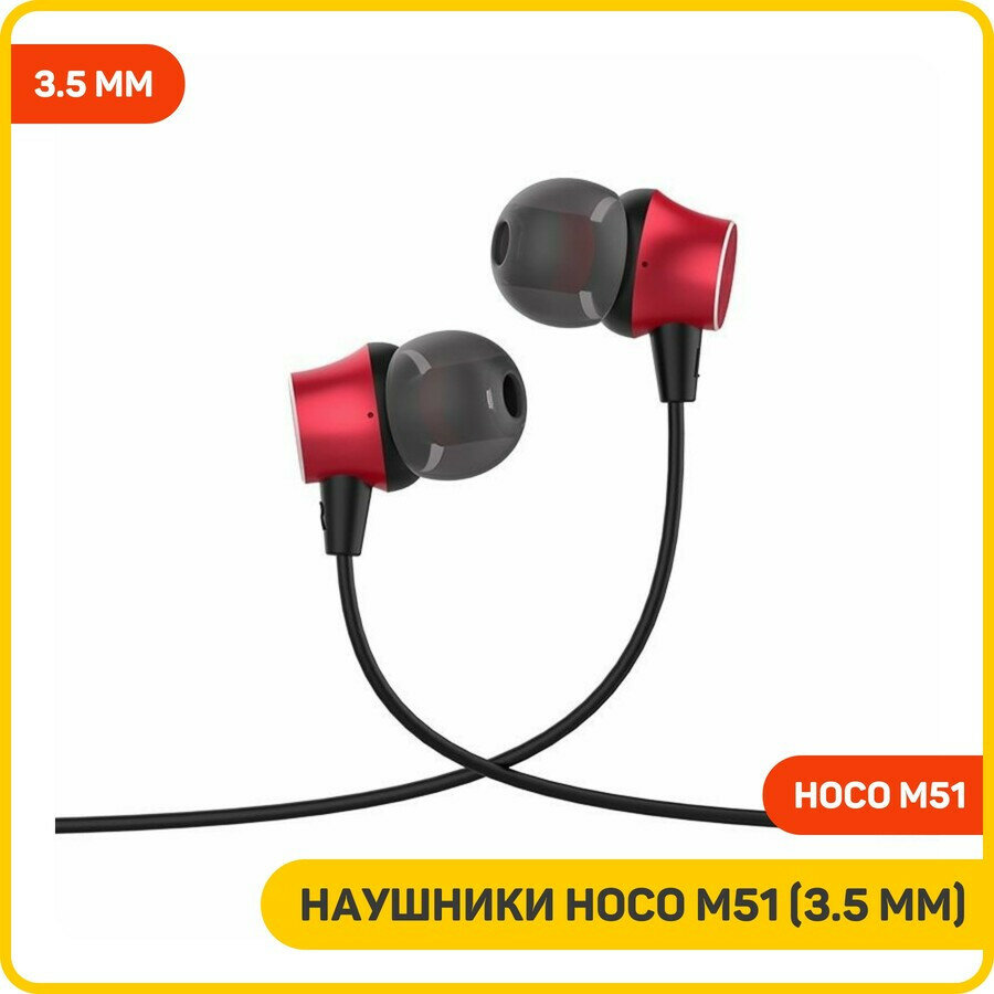 10 цен на Проводные наушники M51 Proper sound Universal Earphone, HOCO, вакуумные с микрофоном, красные