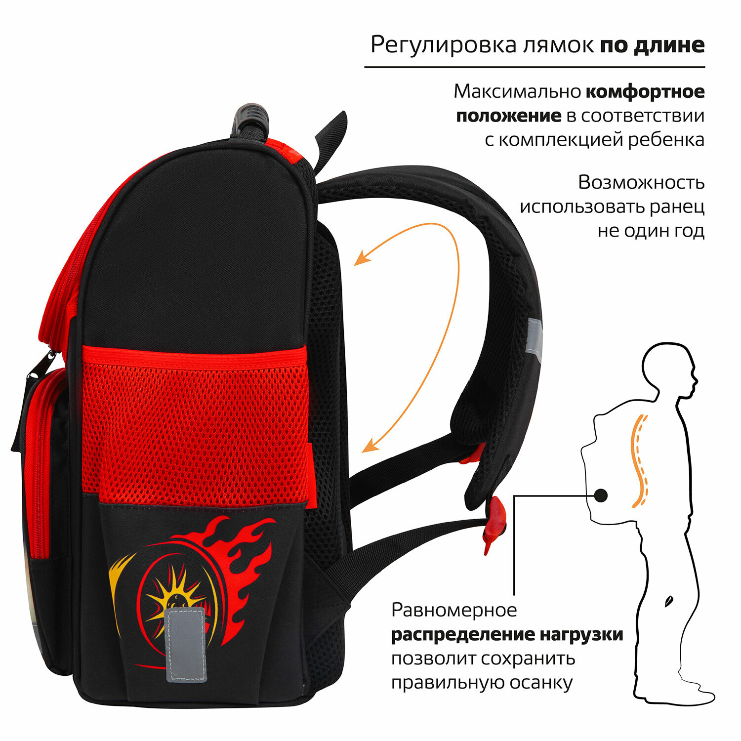 Рюкзак школьный для мальчика, портфель для первоклассника ортопедический, ранец детский в школу, эргономичная спинка, 1 отделение, 3 кармана, Пифагор Cool Wheels, 35х28х18 см, 272045 3 544 ₽