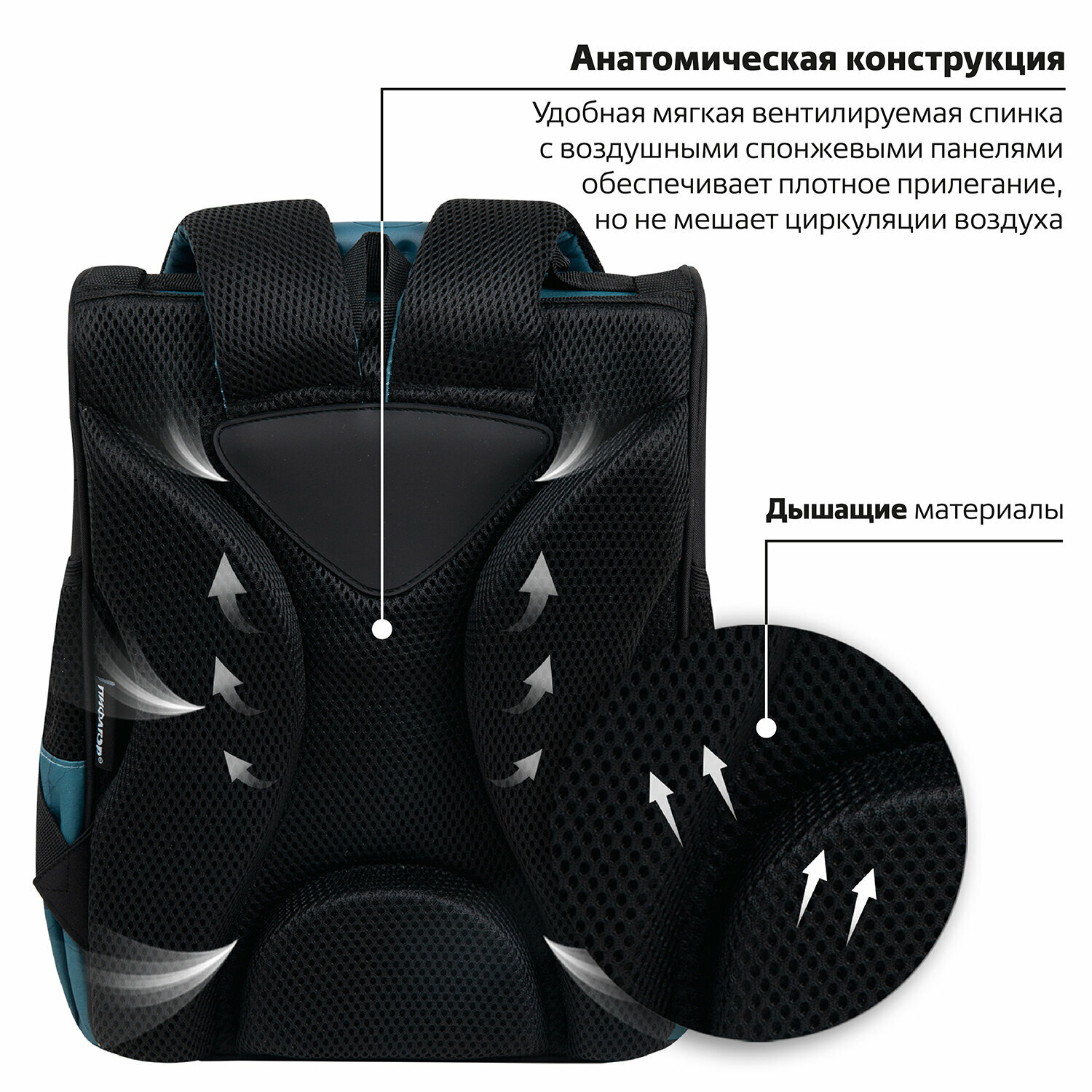 Ранец / рюкзак / портфель школьный для мальчика первоклассника Пифагор Basic, с эргономичной спинкой, Monster steel, 35х28х18 см, 270686