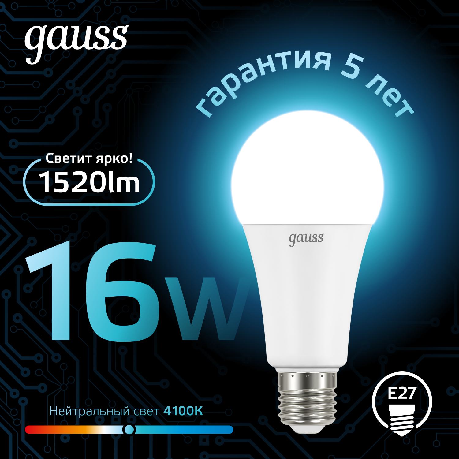 Отзывы на Лампочка светодиодная Е27 Груша 16W нейтр белый свет 4100K упаковка 10 шт. Gauss