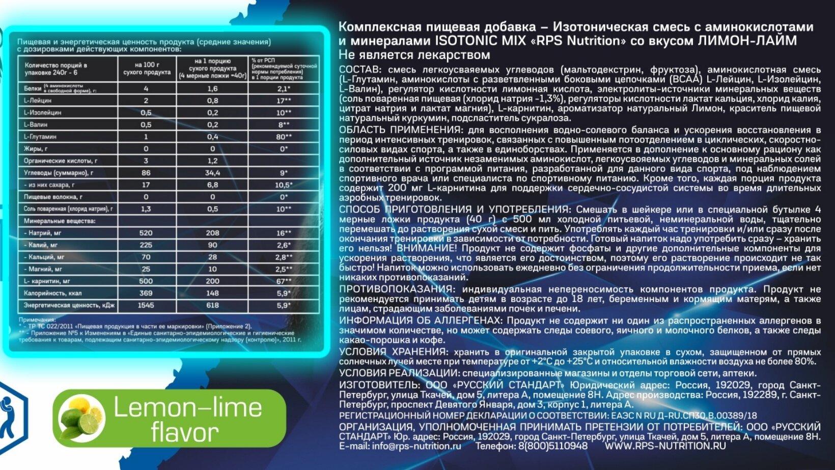 Isotonic + BCAA Mix 240 гр (RPS Nutrition) Лимон-лайм информация: