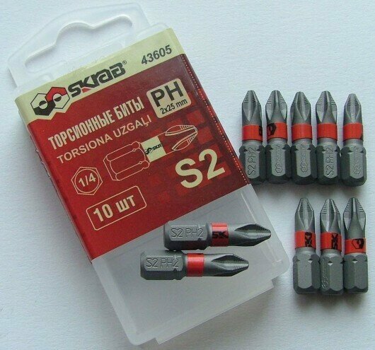 10 цен на Биты торсионные PH 1 x 70 мм 10шт. Красные SKRAB 43602