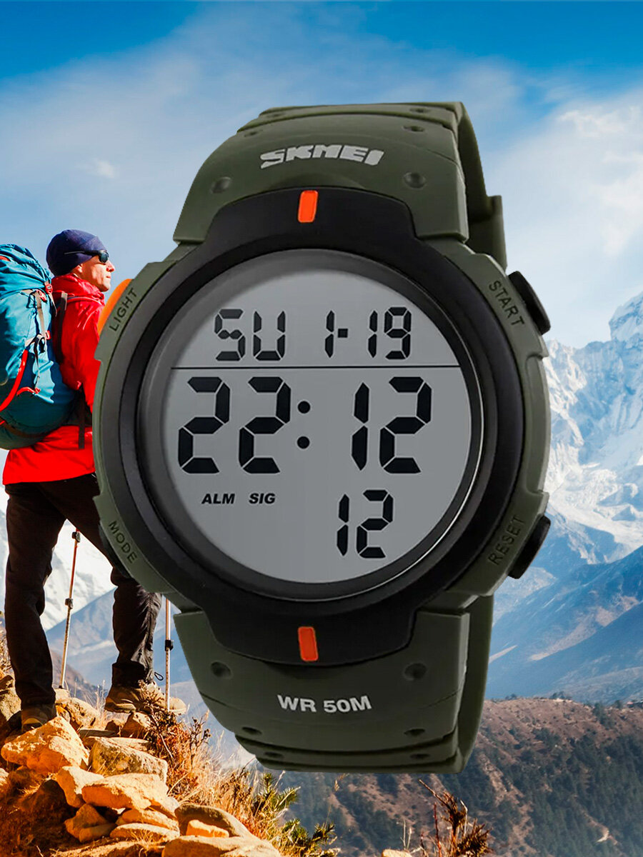 Отзывы на Часы наручные спортивные электронные мужские SKMEI кварцевые, с секундомером и подсветкой, цвет хаки