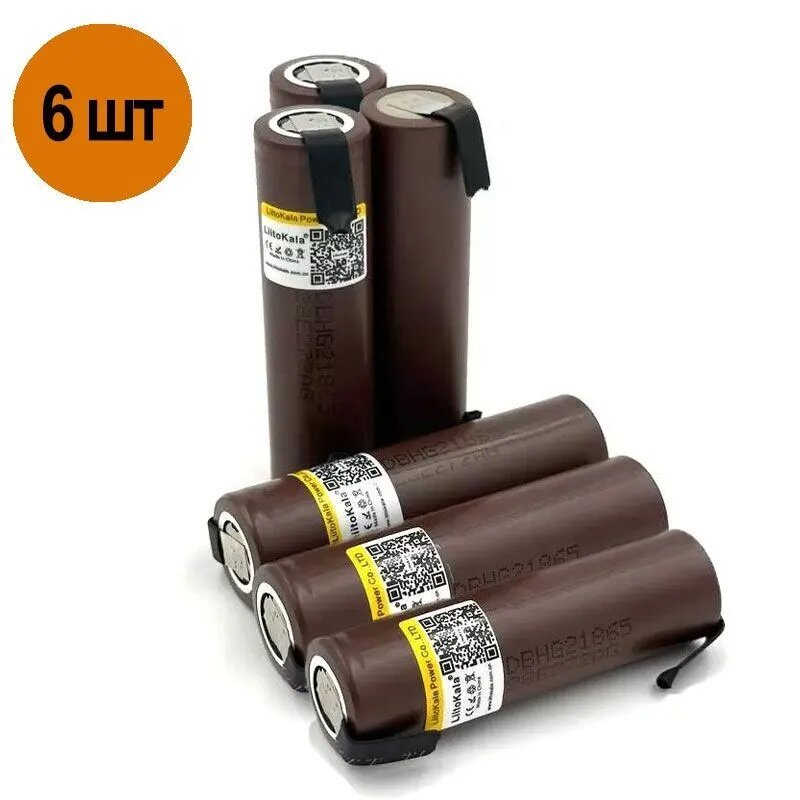 Аккумулятор Li-Ion 2900mAh 3.7 В LiitoKala HG2 18650 высокотоковый незащищенный с выводами, в упаковке: 6 шт. информация: