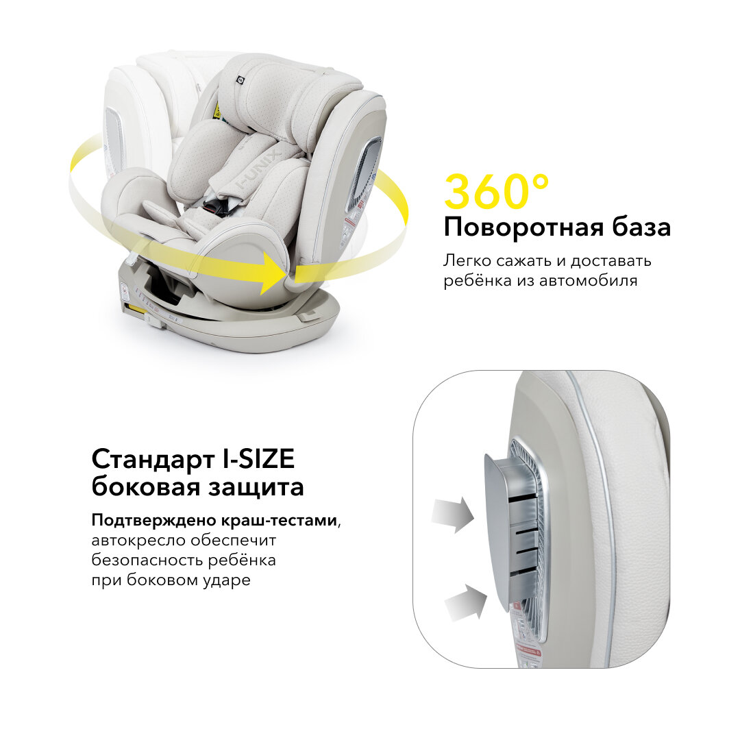 Отзывы на Автокресло детское от 0-12 лет, поворот на 360, I-Unix Happy Baby, группа 0+/1/2/3 (0-36 кг), экокожа, светло-серое
