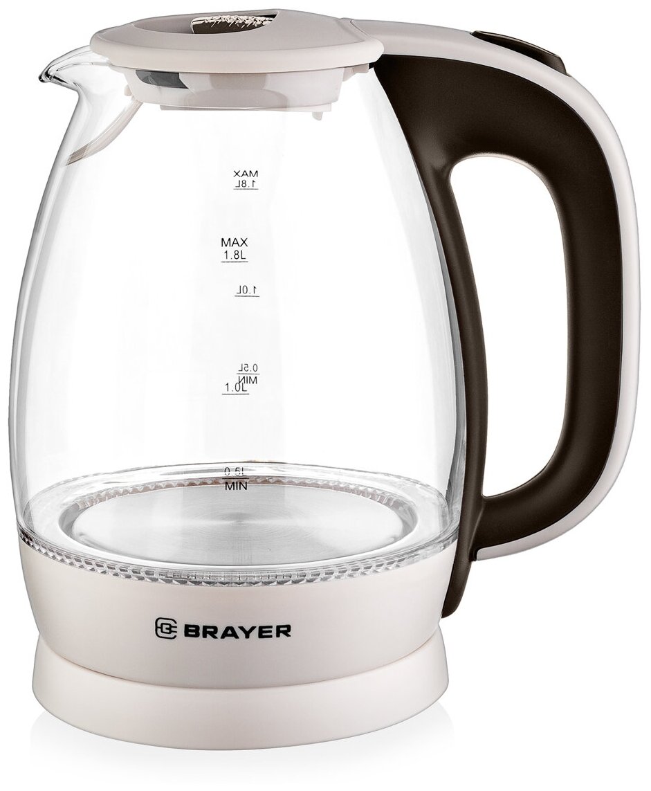 Чайник BRAYER BR1045BN, 1.8 л, 2200 Вт, закрытый нагревательный элемент, стекло, бежевый 1 934 ₽