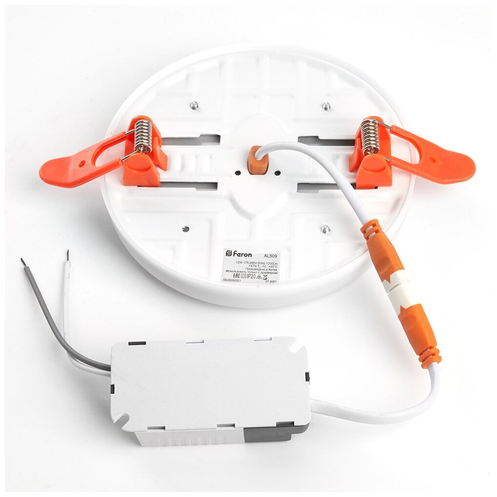 Feron светильник встр. светодиодн. даунлайт любое отверст d40-90 без рамк 12W(1200lm) 4000K 4K 120x20 AL509 41208 (арт. 737406)