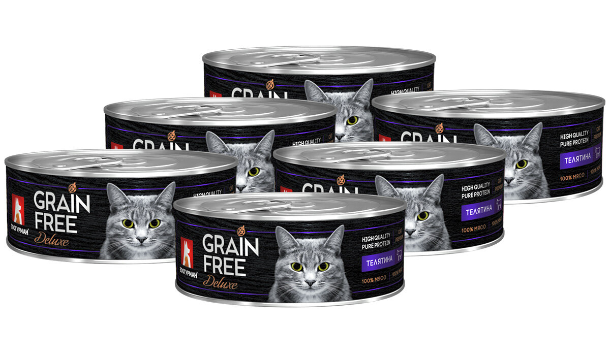 10 цен на Зоогурман GRAIN FREE DELUXE беззерновые для взрослых кошек с телятиной банка 100 грNEW 100 гр х 6 шт