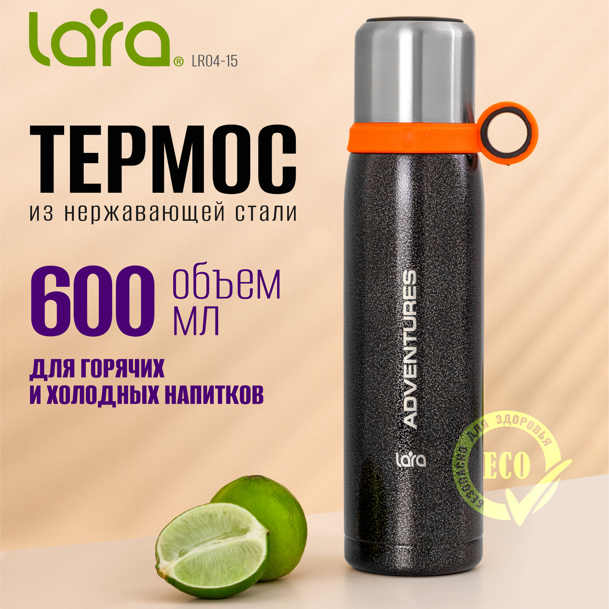 10 цен на Термос металлический с кружкой LARA LR04-15 - 0.6 л
