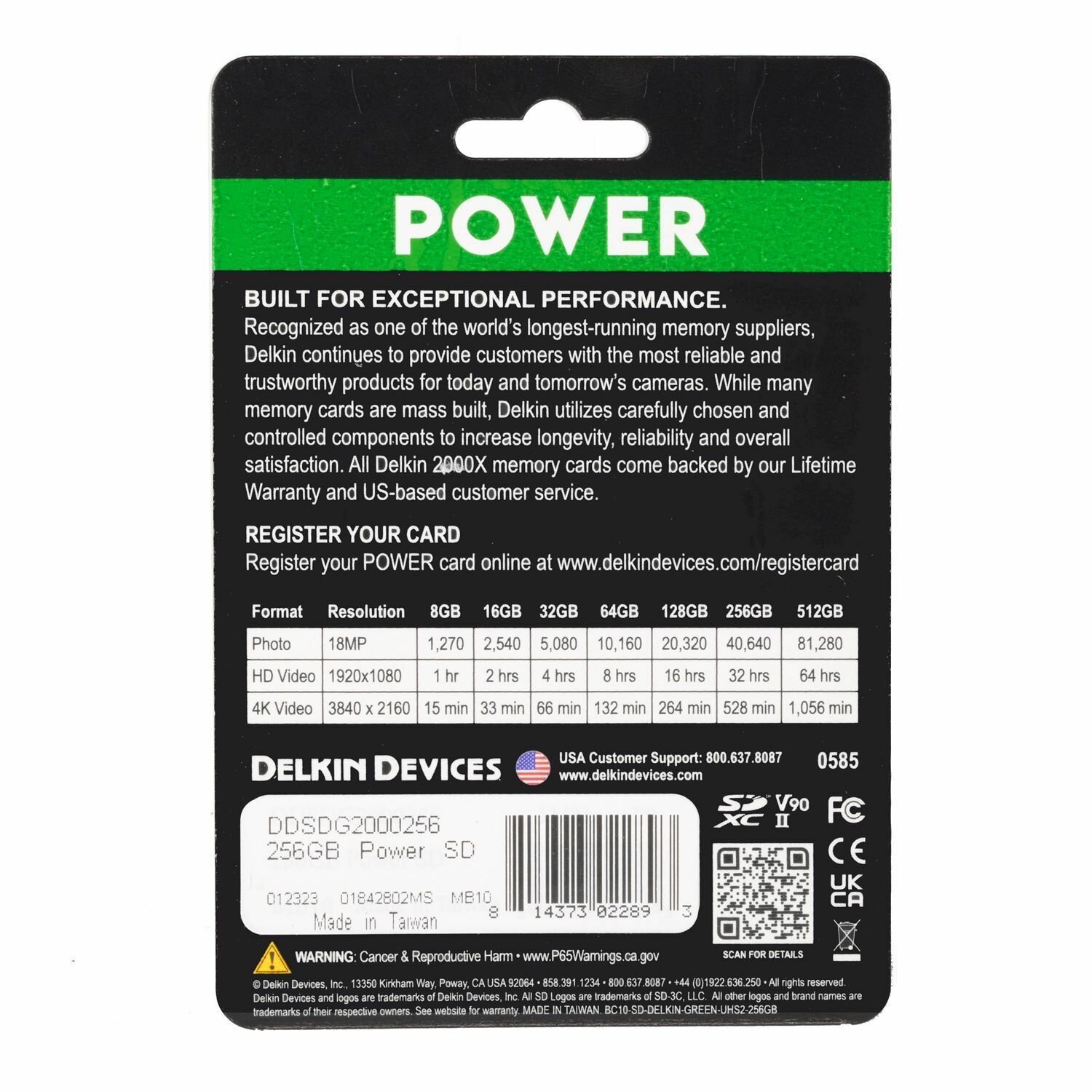 Карта памяти Delkin Devices Power 2000X SDXC 256GB UHS-II U3 V90, R/W 300/250 МБ/с информация: