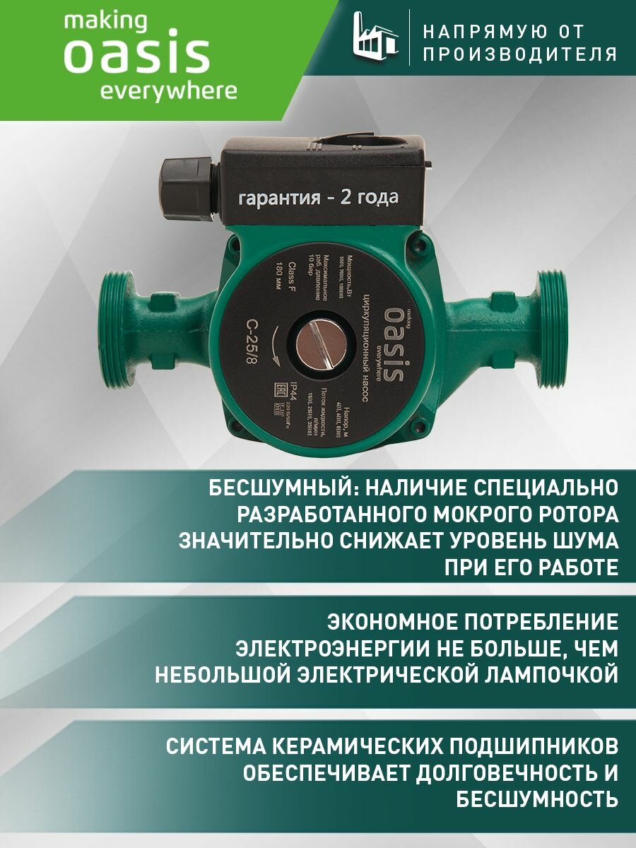 Насос циркуляционный для отопления making Oasis everywhere C-25/8, 100 Вт, напор 8 м, 35 л/мин информация: