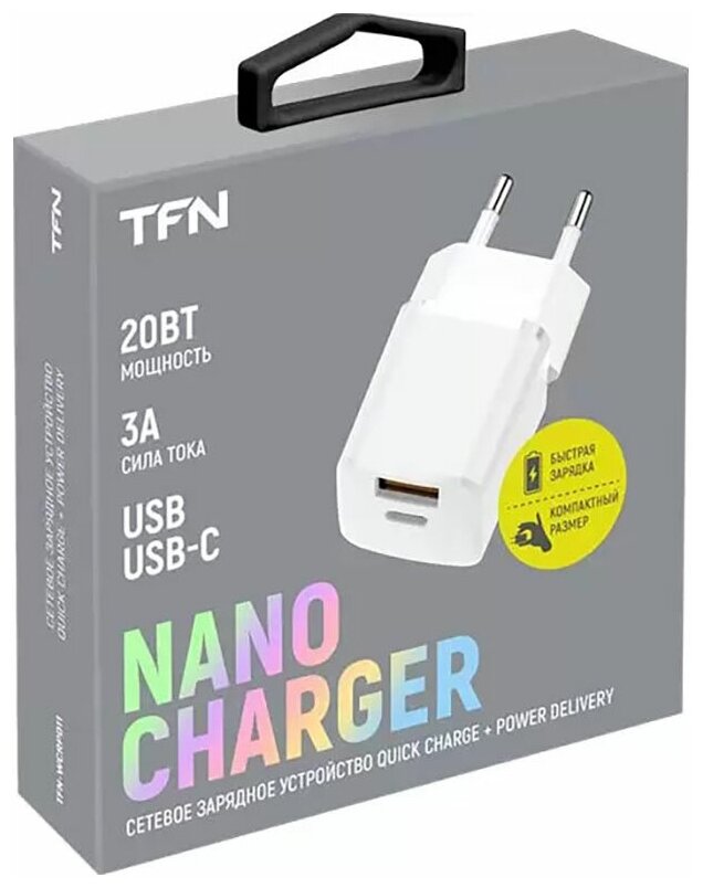 Зарядное устройство TFN Nano USB A+C PD 20W, белое информация: