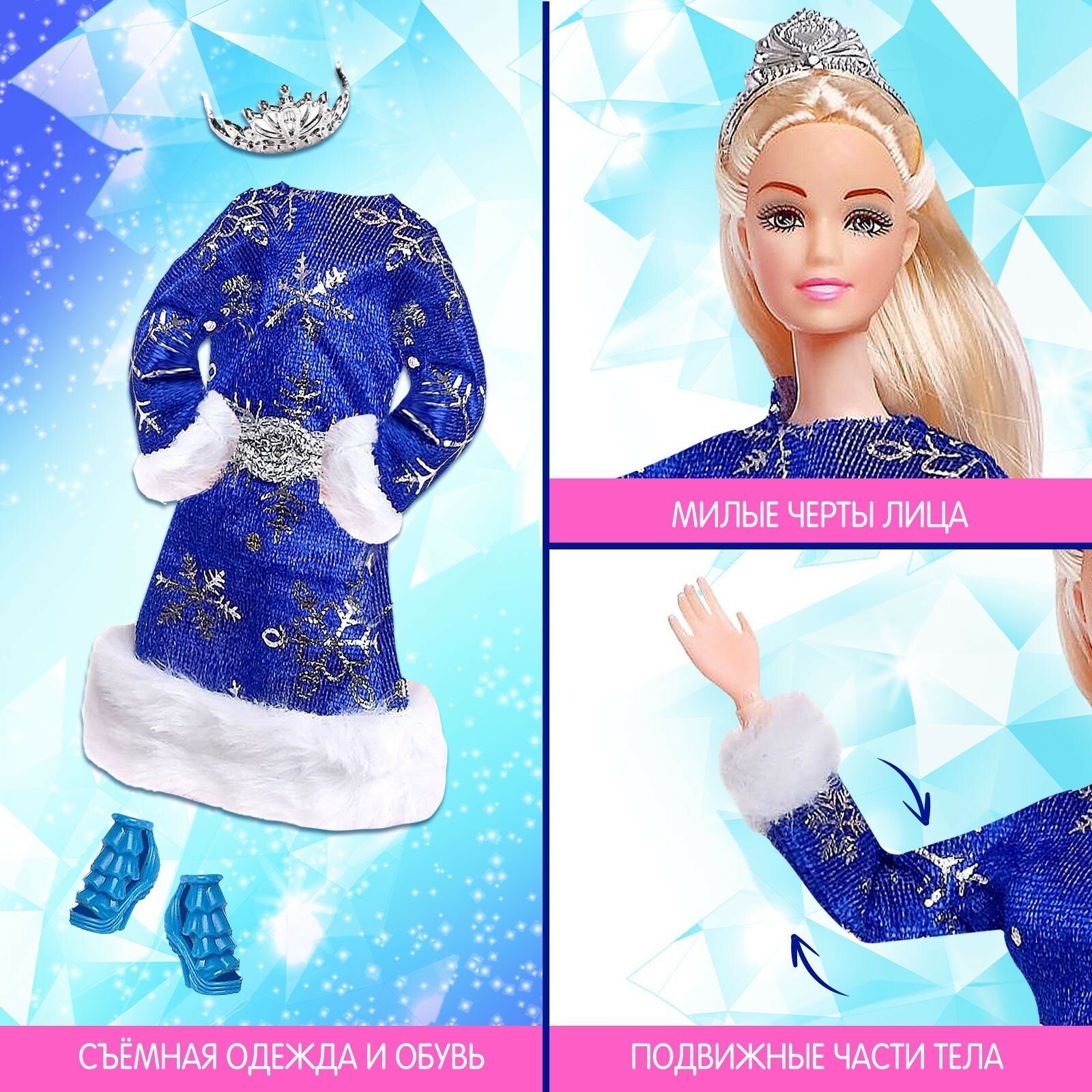 Кукла-модель снегурочка шарнирная «Снежная принцесса»