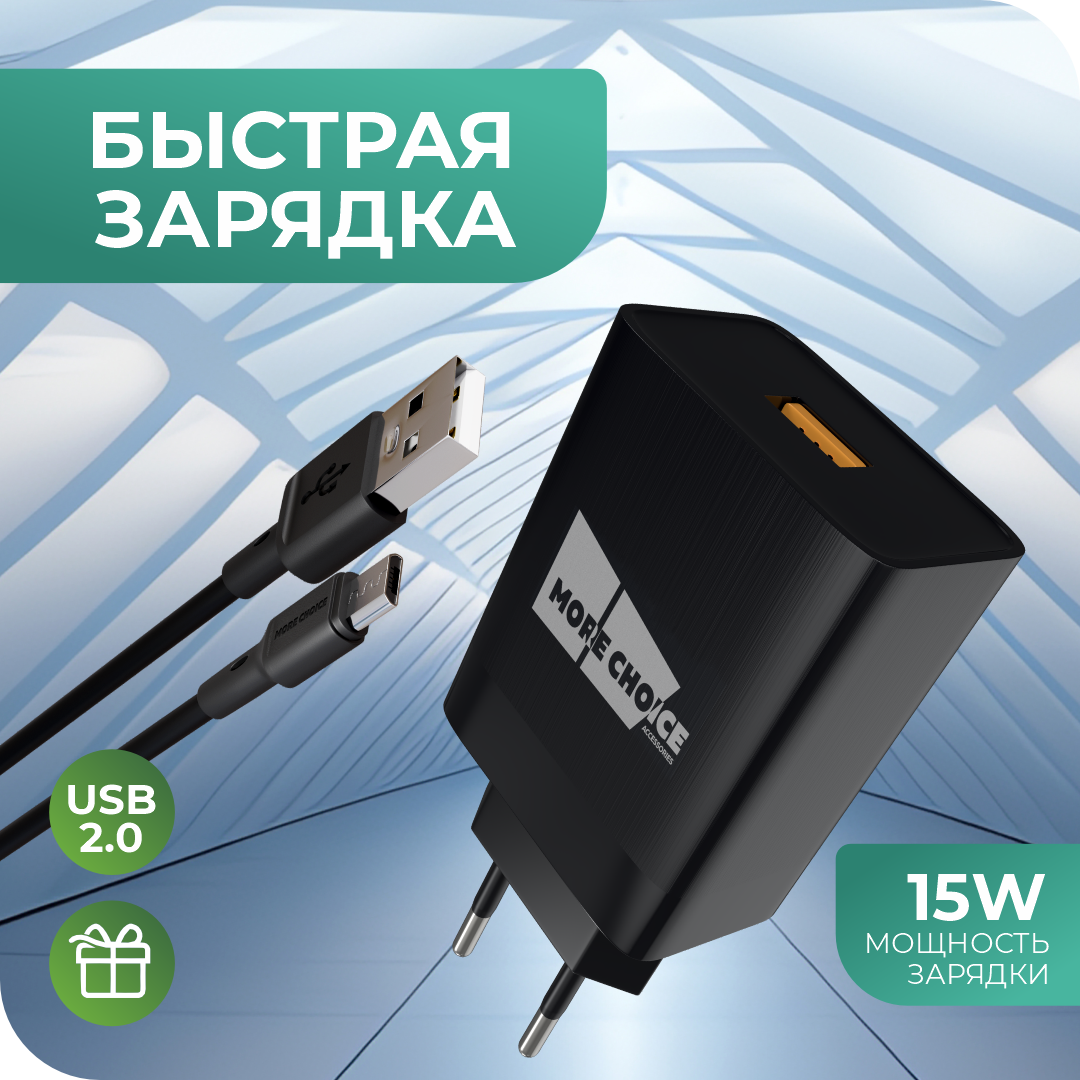 10 цен на Сетевое зарядное устройство 1USB 3.0A QC3.0 с кабелем micro USB быстрая зарядка More choice NC52QCm Black