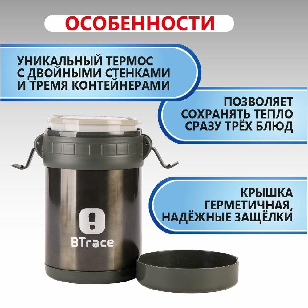Термос для еды Btrace 1,5 л, черный, двойные стенки, нержавеющая сталь, контейнеры в комплекте информация:
