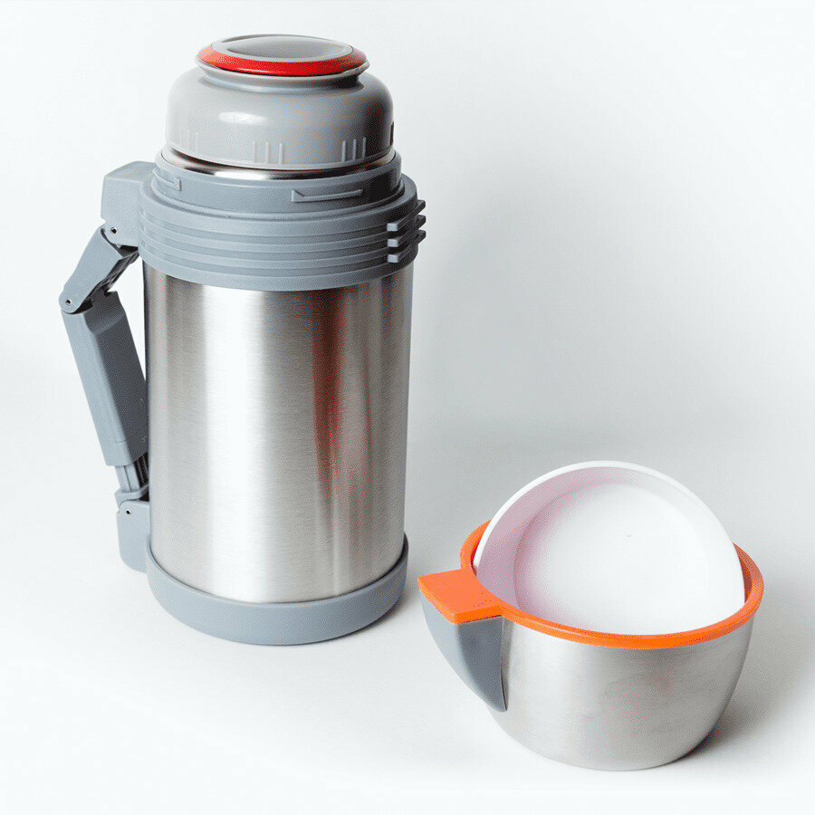Отзывы на Термос для еды и напитков Btrace 1,8 л, двойные стенки, серый, нержавеющая сталь, крышка-чашка, непроливайка, складная ручка