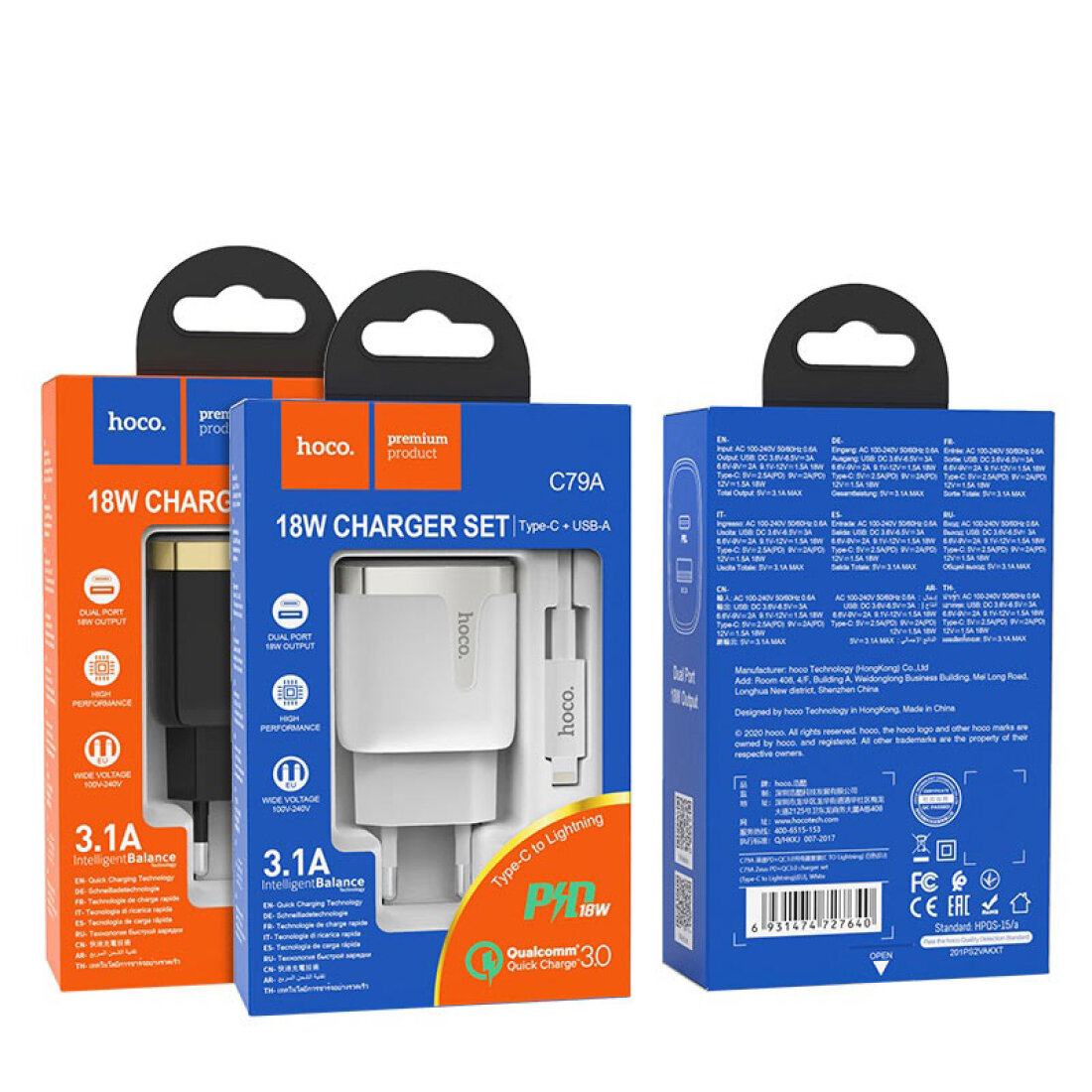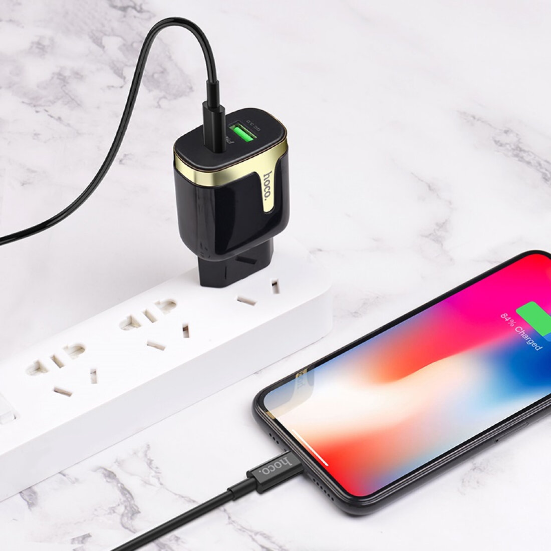 Отзывы на Сетевое зарядное устройство, 1 USB 3.0 QC+1 PD 18W (C79A), HOCO, Type-C to Lightning, черный