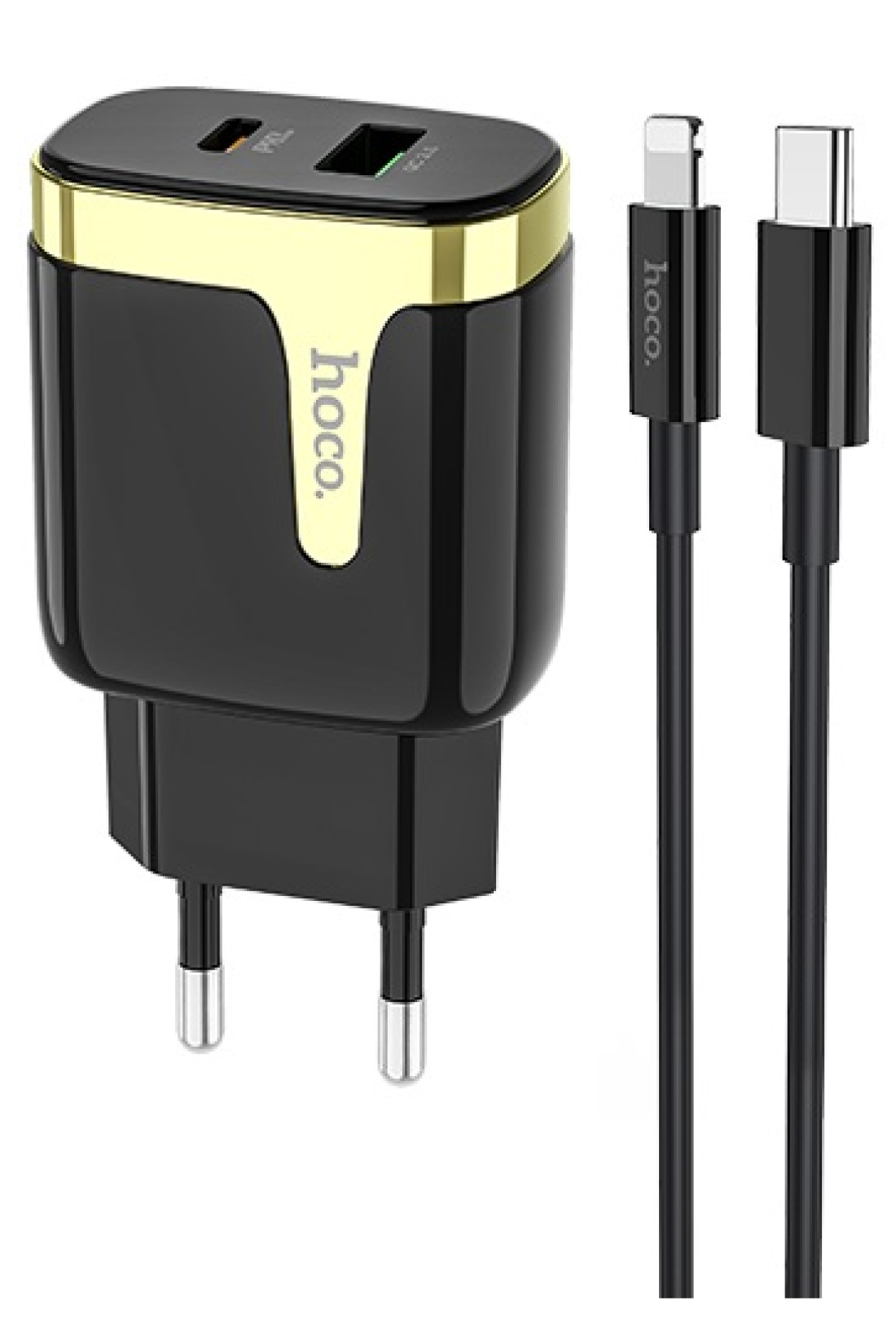 Сетевое зарядное устройство, 1 USB 3.0 QC+1 PD 18W (C79A), HOCO, Type-C to Lightning, черный информация: