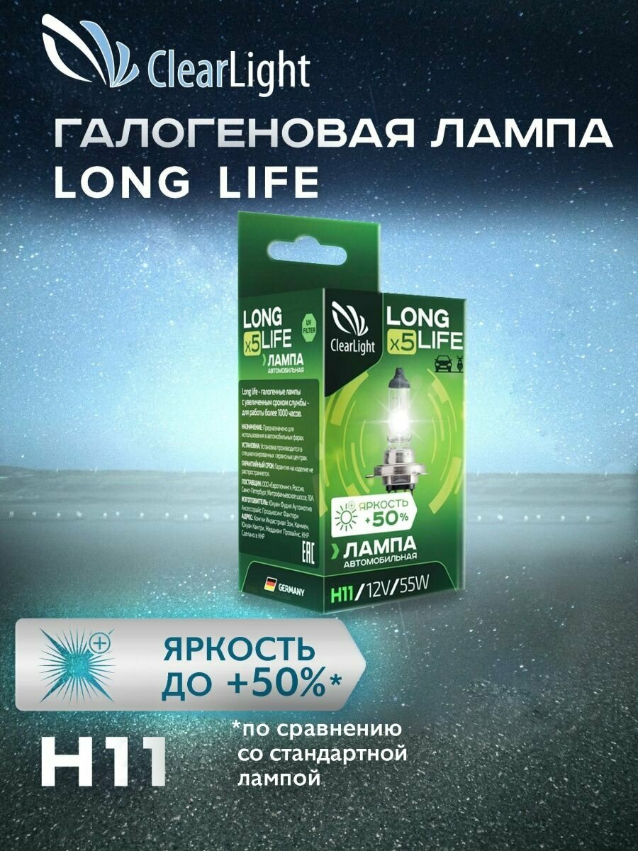 Clearlight Long Life (mlh11ll) Лампа автомобильная (h11, 55W, 12V) .