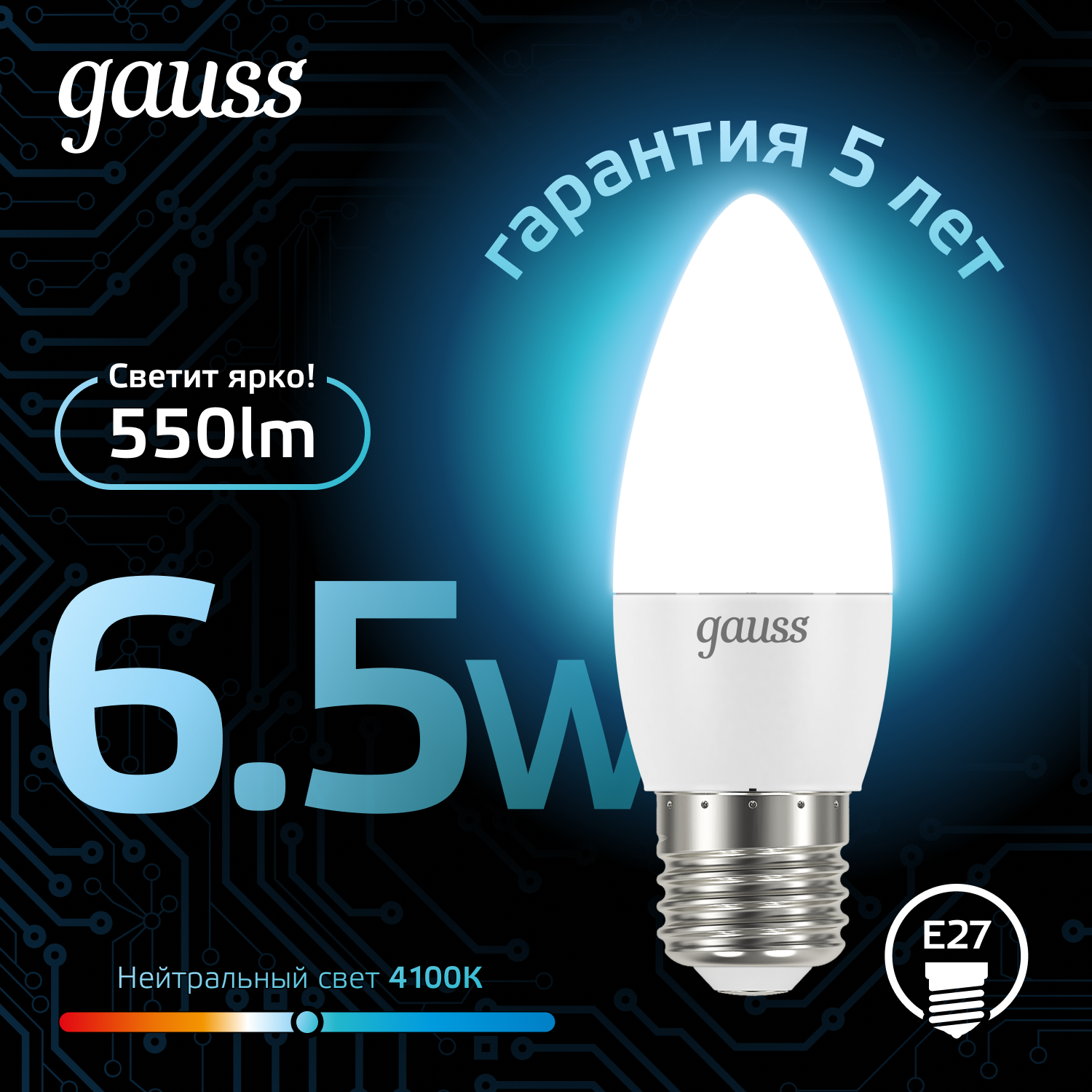 Отзывы на Лампочка светодиодная E27 свеча 6.5W нейтр белый свет 4100К упаковка 10 шт. Gauss Black