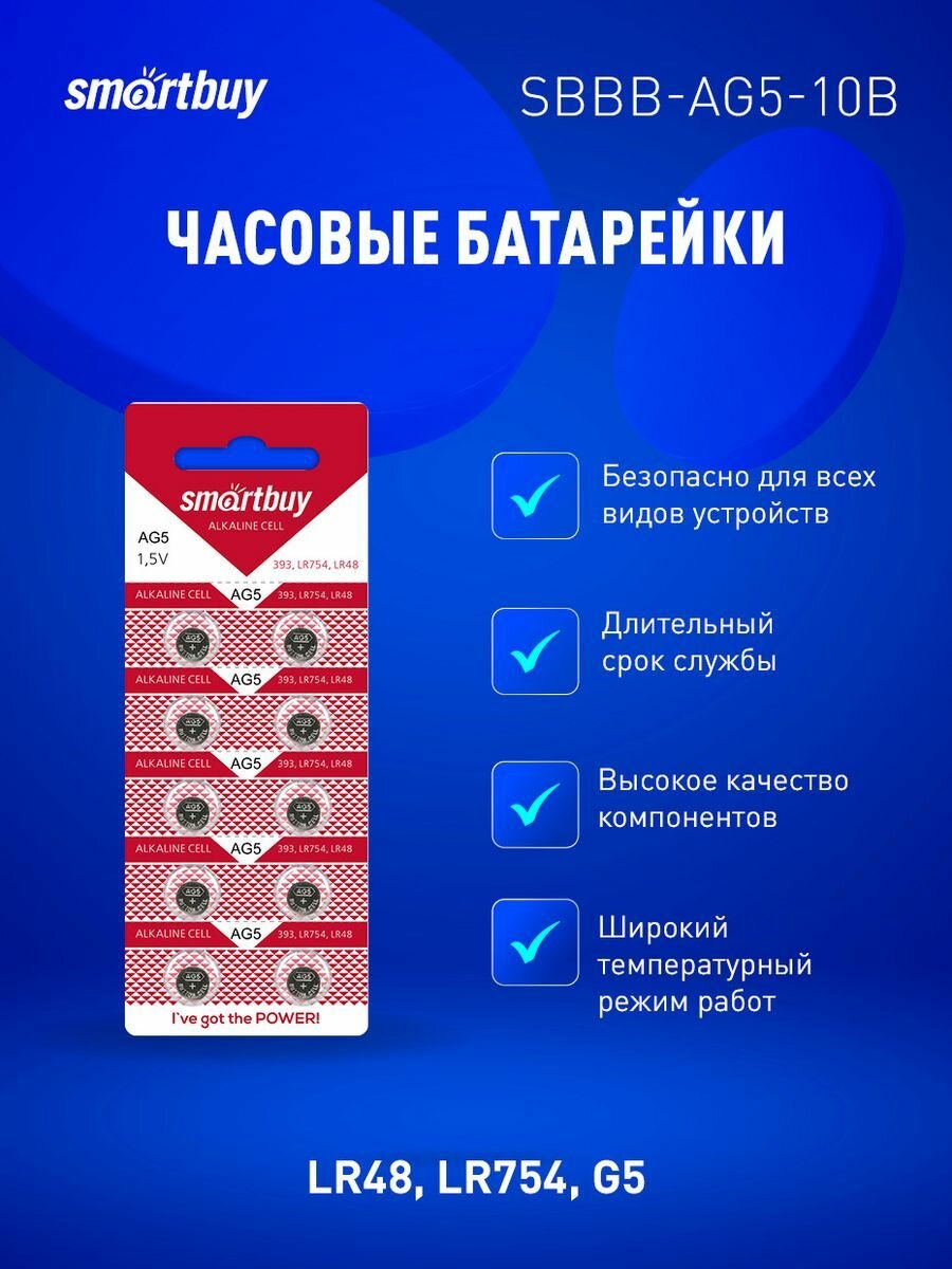 Батарейки Smartbuy Alkaline Cell AG5 (393, LR754, LR48)