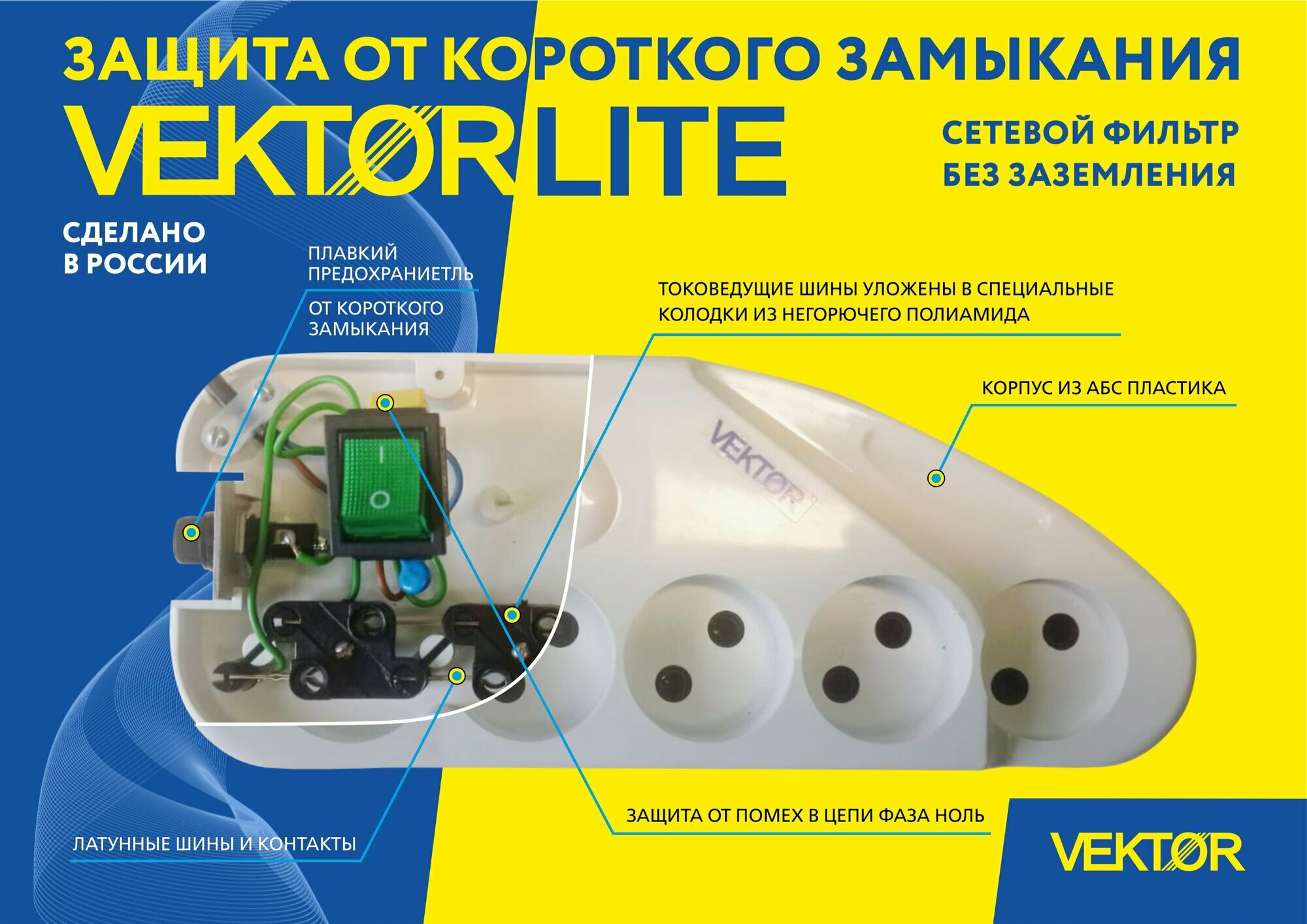 Отзывы на Сетевые фильтры Vektor Сетевой фильтр Vektor LITE 2.2кВт белый 1.8м (для бытовой техники б/з)