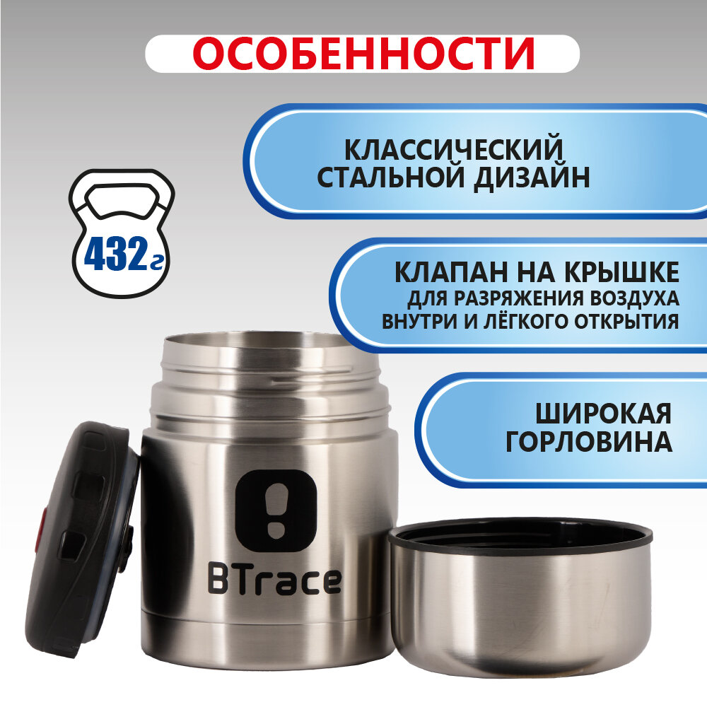 Термос для еды и напитков Btrace 0,5 л, двойные стенки, серый, нержавеющая сталь, широкая горловина, крышка-чашка информация: