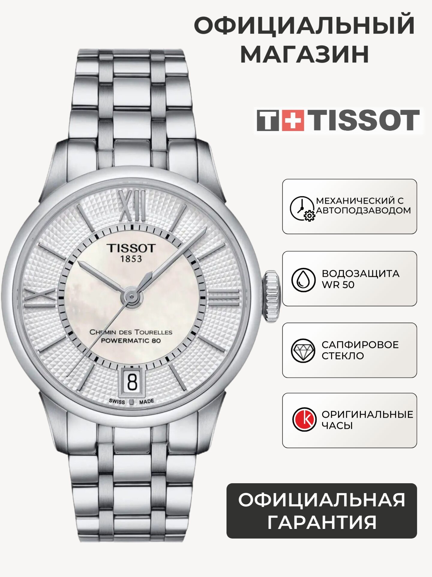 10 цен на Женские часы Tissot Chemin Des Tourelles Powermatic 80 Lady T099.207.11.118.00 (T0992071111800)