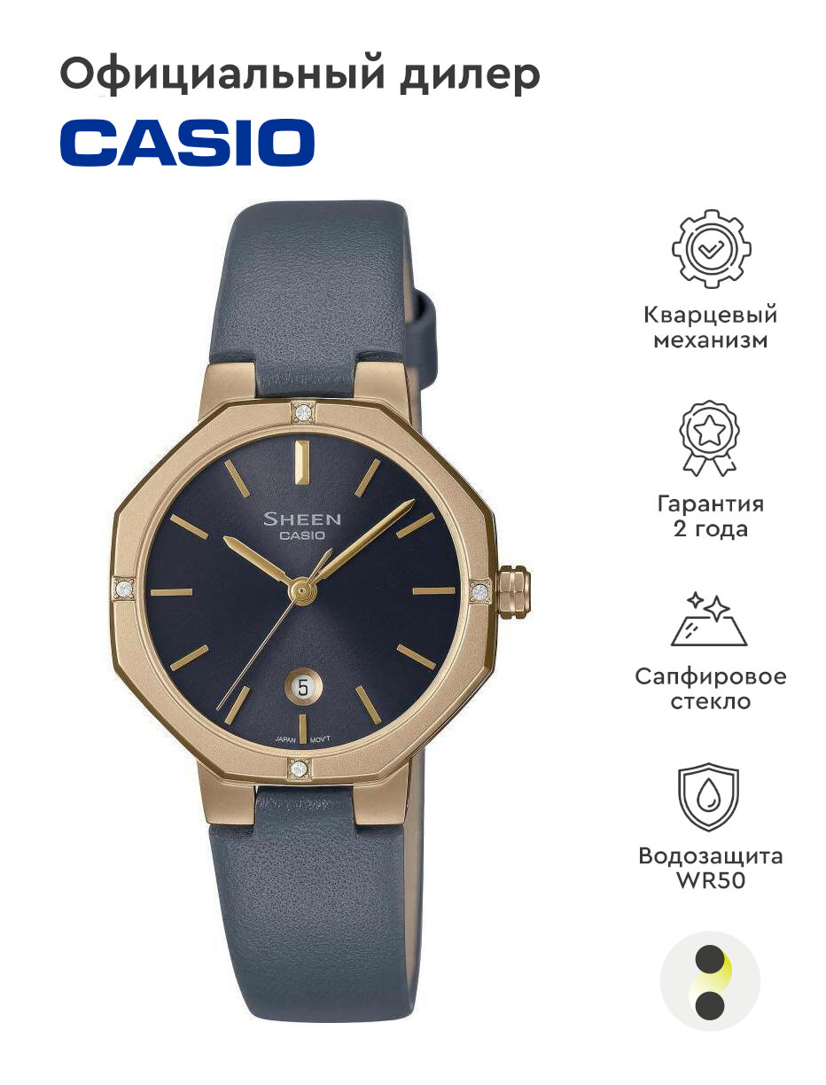 CASIO | SHEEN SHE-4543GL-8A женские кварцевые наручные часы с сапфировым стеклом и датой