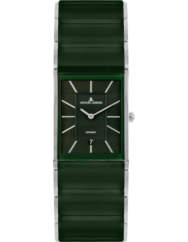 Наручные часы Jacques Lemans 1-1939E, прямоугольные керамические с датой на комбинированном браслете (сталь и керамика)