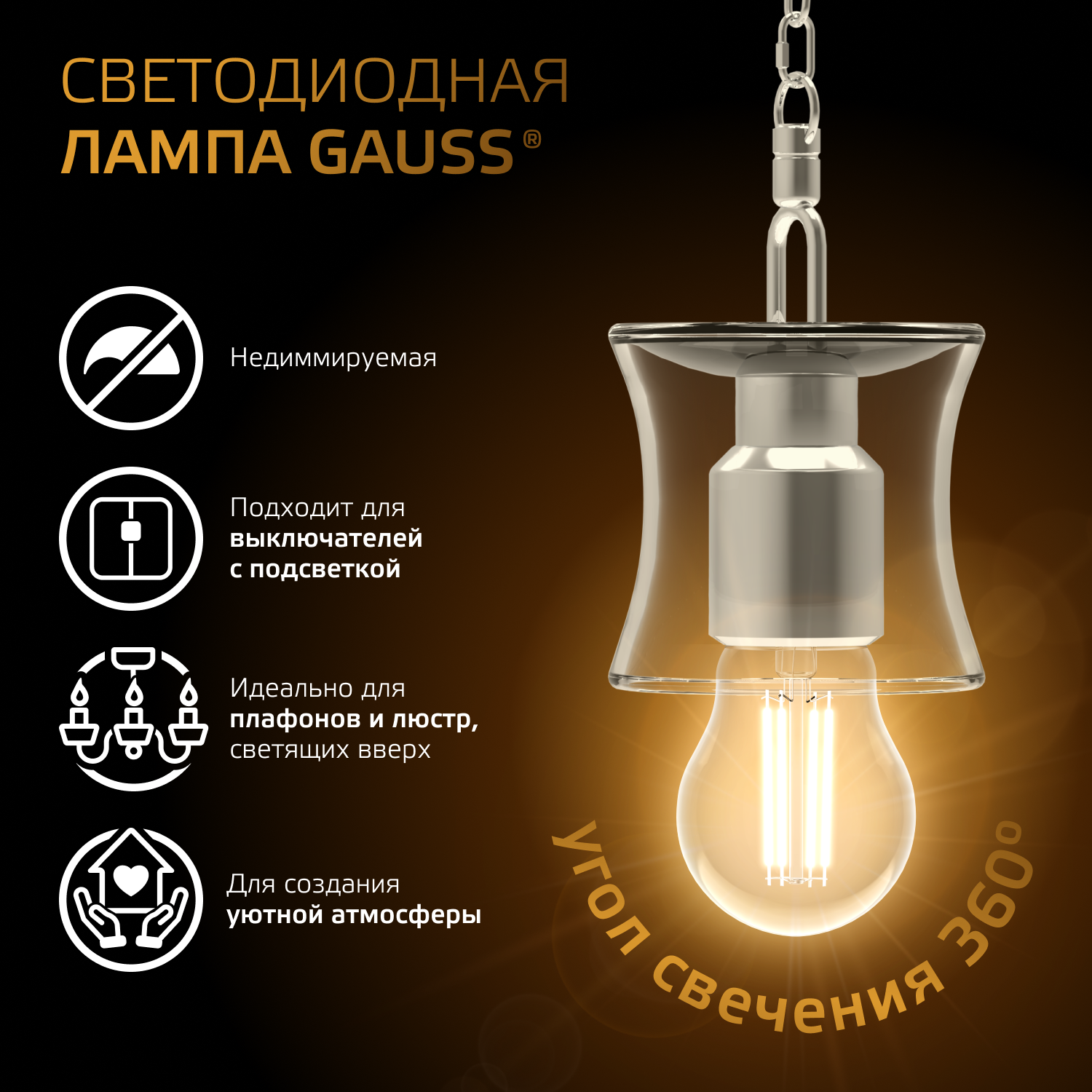 Отзывы на Лампочка светодиодная E27 Груша 6W теплый свет 2700К упаковка 10 шт. Gauss Black Filament