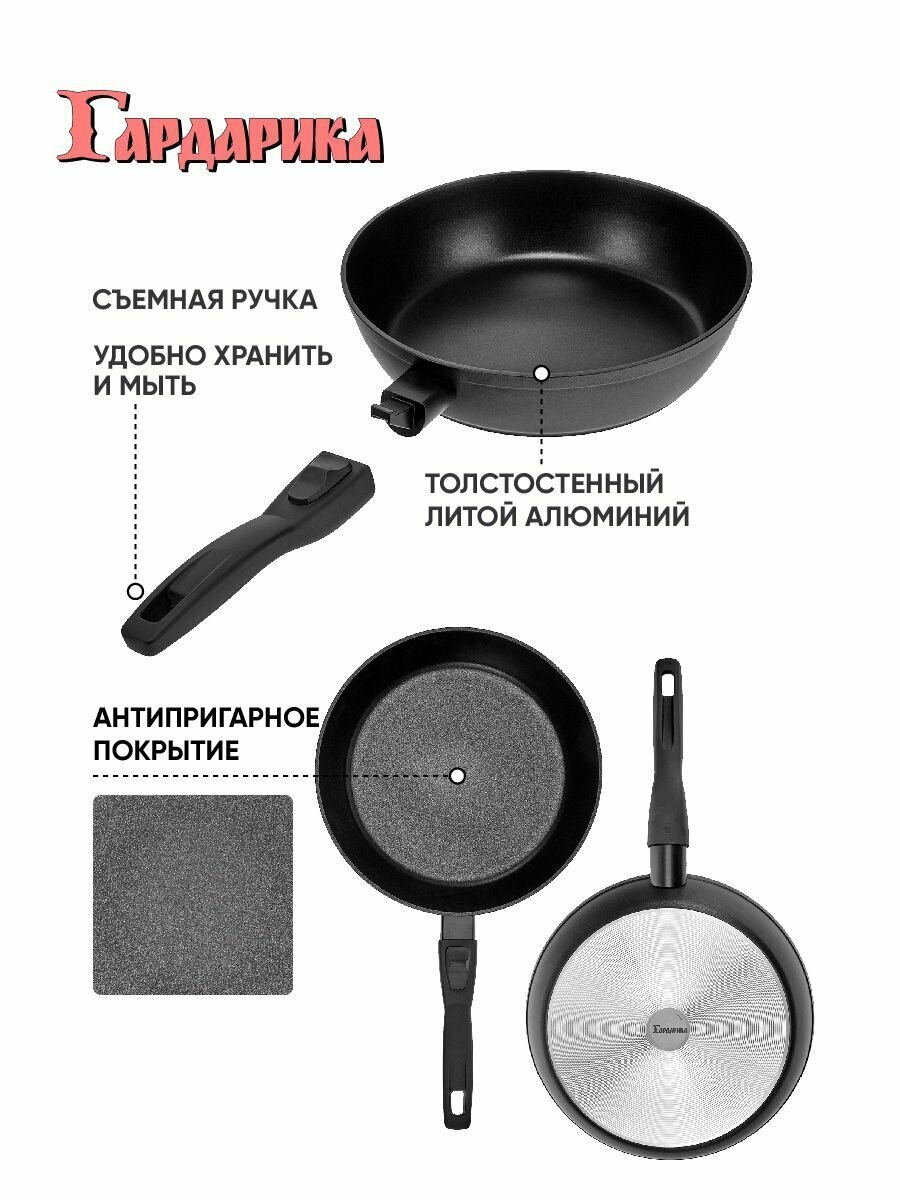 Сковорода со съемной ручкой 24 см, литая с усиленным антипригарны покрытием, Гардарика Премьера