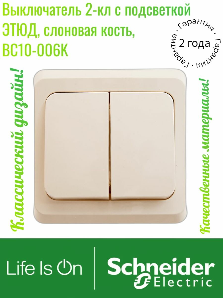 Выключатель 2-кл с подсветкой Schneider Electric этюд, слоновая кость, BC10-006K информация: