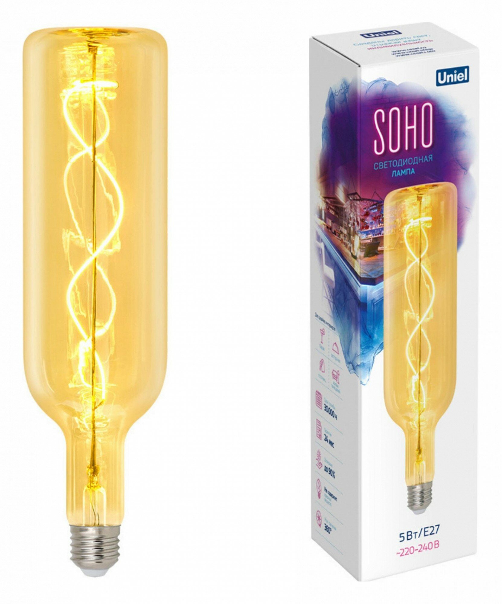 Отзывы на LED-SF21-5W-SOHO-E27-CW GOLDEN GLS77GO Лампа светодиодная SOHO. Золотистая колба. Спиральный филамент. Картон. ТМ Uniel