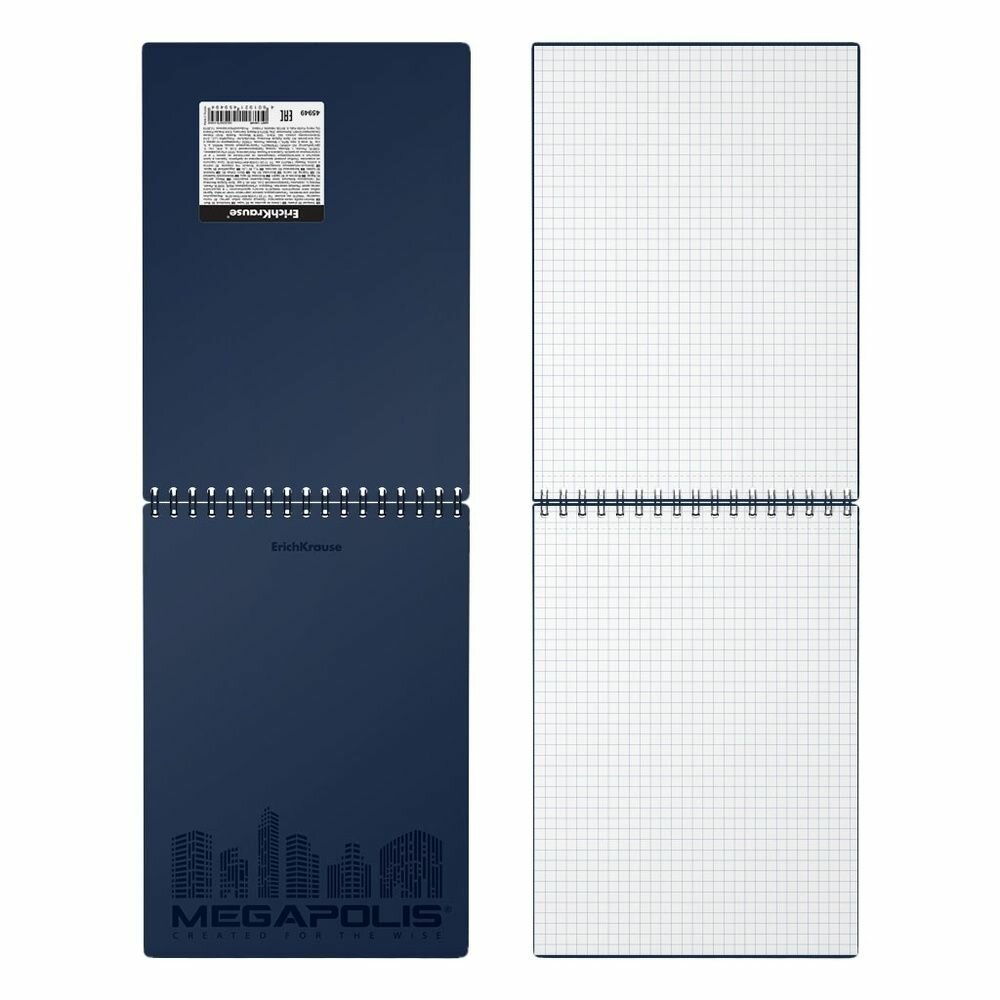 10 цен на Блокнот Erich Krause А5, MEGAPOLIS, 80 листов, обложка пластик, синий, спираль, клетка (45949)