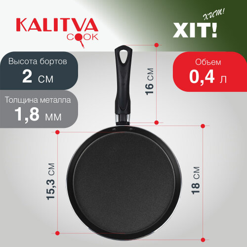 Сковорода блинная Белая калитва "Хит", d 18 см, антипригарная, черная 886 ₽