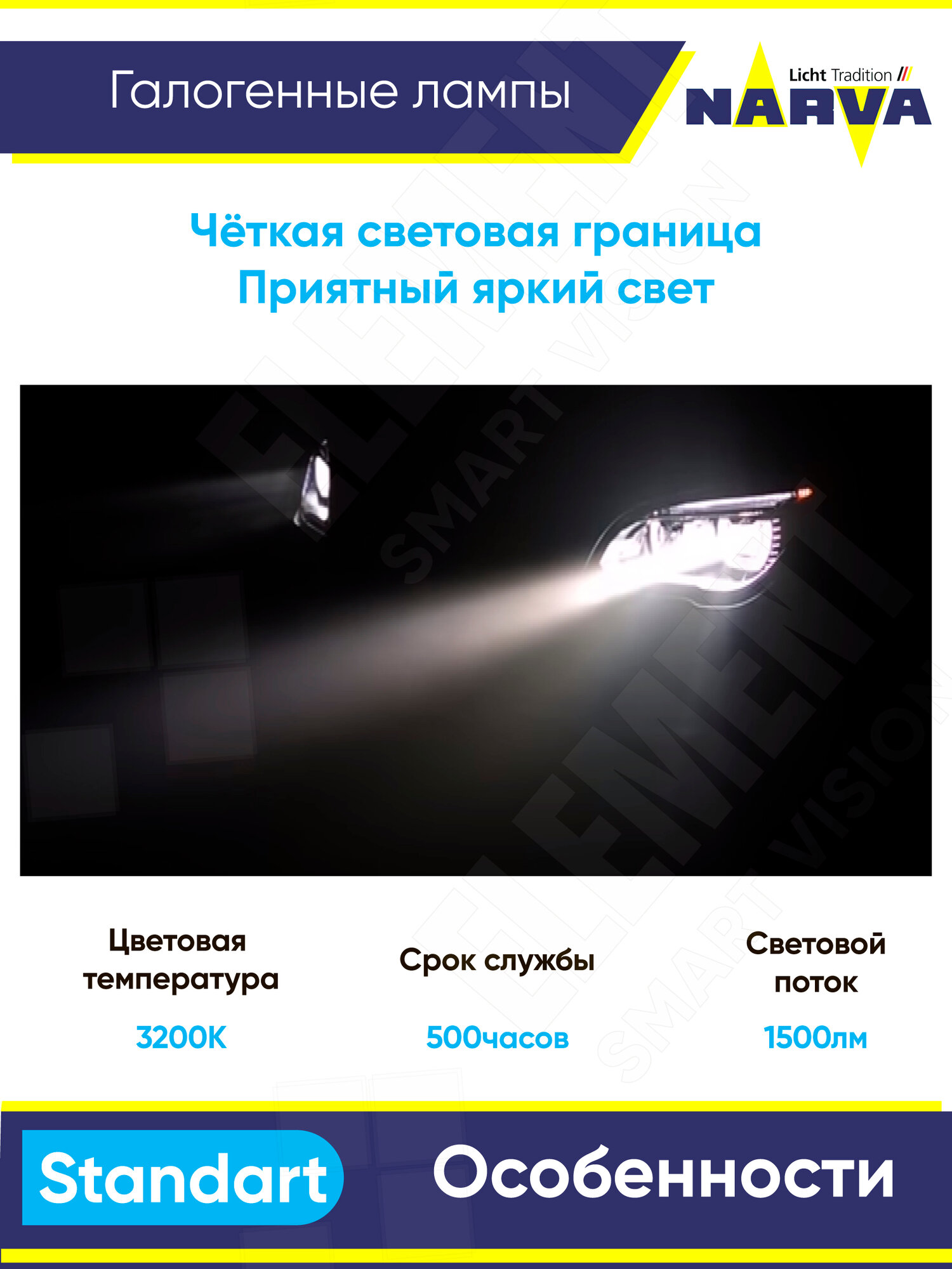 Лампа автомобильная галогенная Narva 48095 H10 12V 45W PY20d 2900K 1 шт. информация: