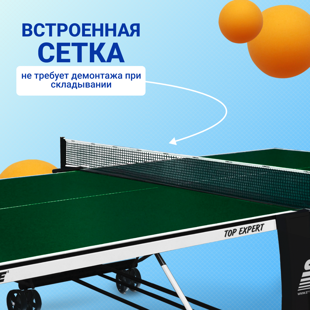 Теннисный стол Start Line Top Expert зеленый, профессиональный, для помещений, складной, с встроенной сеткой и колесами информация: