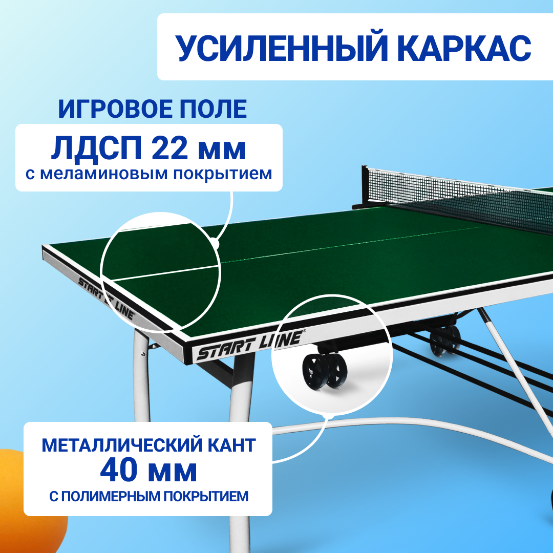 10 цен на Теннисный стол Start Line Top Expert зеленый, профессиональный, для помещений, складной, с встроенной сеткой и колесами