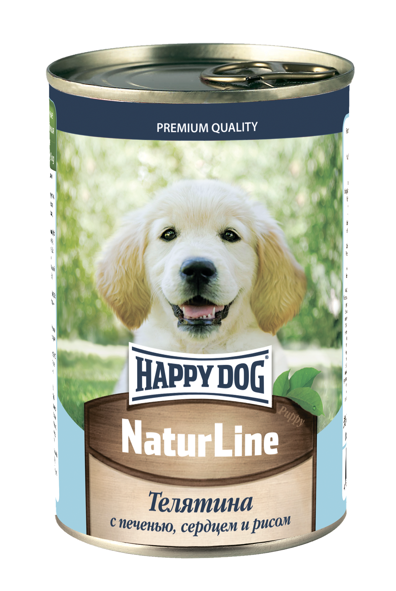 Консервы для щенков Happy Dog NatureLine (Телятина с печенью, сердцем и рисом), 410 гр. По 12 шт.