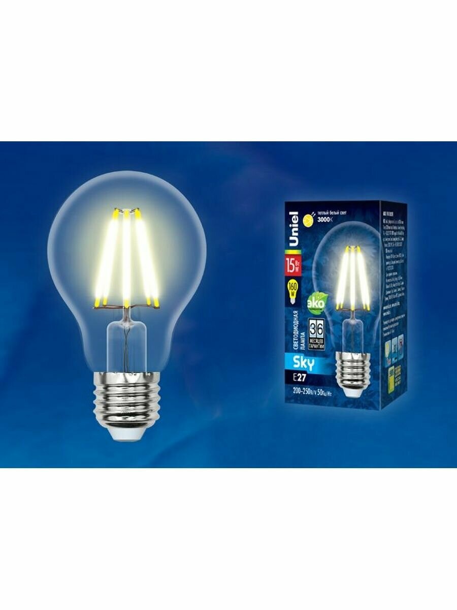 Лампа светодиодная Led-a70-15w/3000k/e27/cl Pls02wh Форма "a", прозрачная. Серия Sky. Теплый белый с информация: