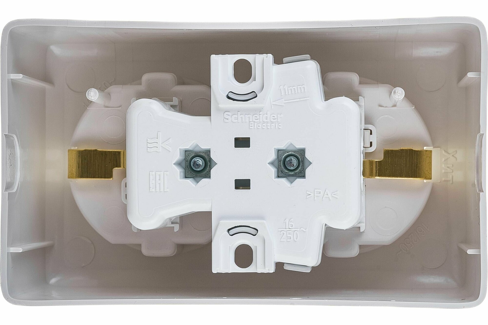 Schneider Electric Хит Белый Розетка 2-местная с заземляющими контактами со шторками 16А, открытая установка Россия RA16-239-B