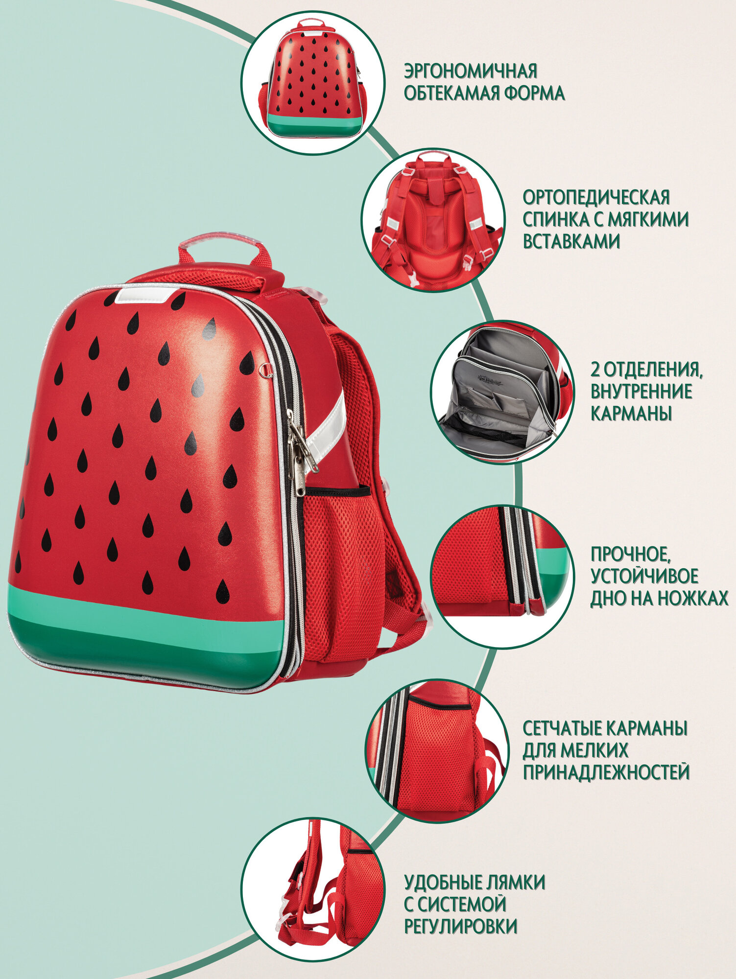 Ранец школьный Комус Класс Basic Арбуз, анатомический, 2 отделения, 2 кармана информация: