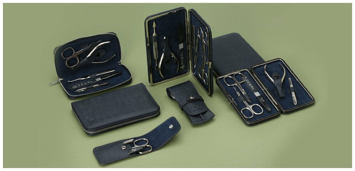 Маникюрный набор DEWAL, 7пр. Футляр: натуральная кожа, цвет синий, 905BLUE 7 790 ₽