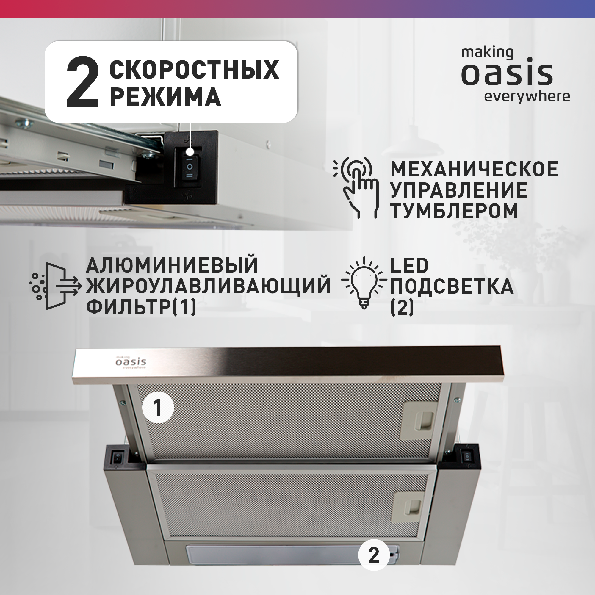 Вытяжка кухонная над плитой встраиваемая making Оasis everywhere UV-50S, 50 см информация: